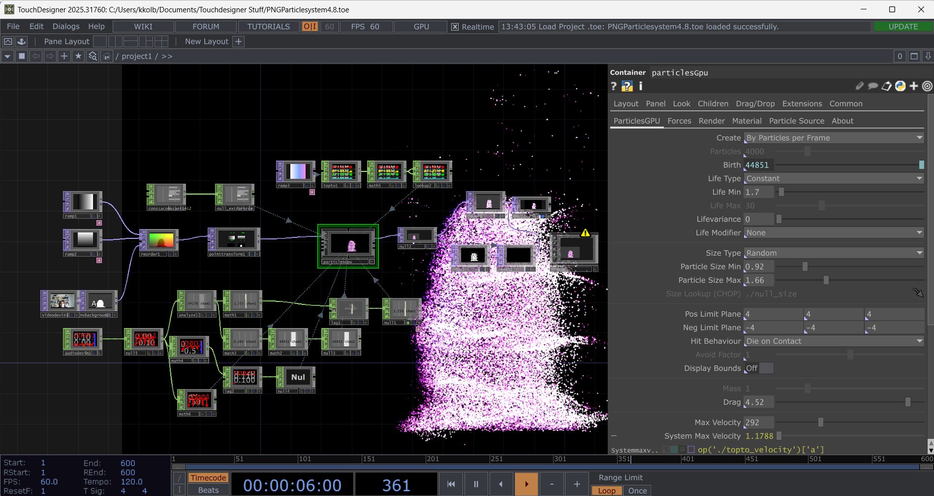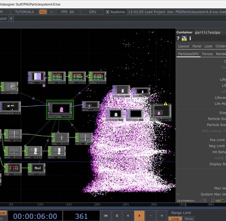 Im Winter 2025 habe ich ein Semester lang an einem Partikelsystem in Touchdesigner gearbeitet. Zuvor kannte ich das Programm nicht, ich hatte ausschließlich Erfahrung mit Tasker - einer Automatisierungsapp, die auch mit Bedingungen arbeitet. Diese Anwendung ist jedoch auch sehr komplex, weswegen ich zuversichtlich war.